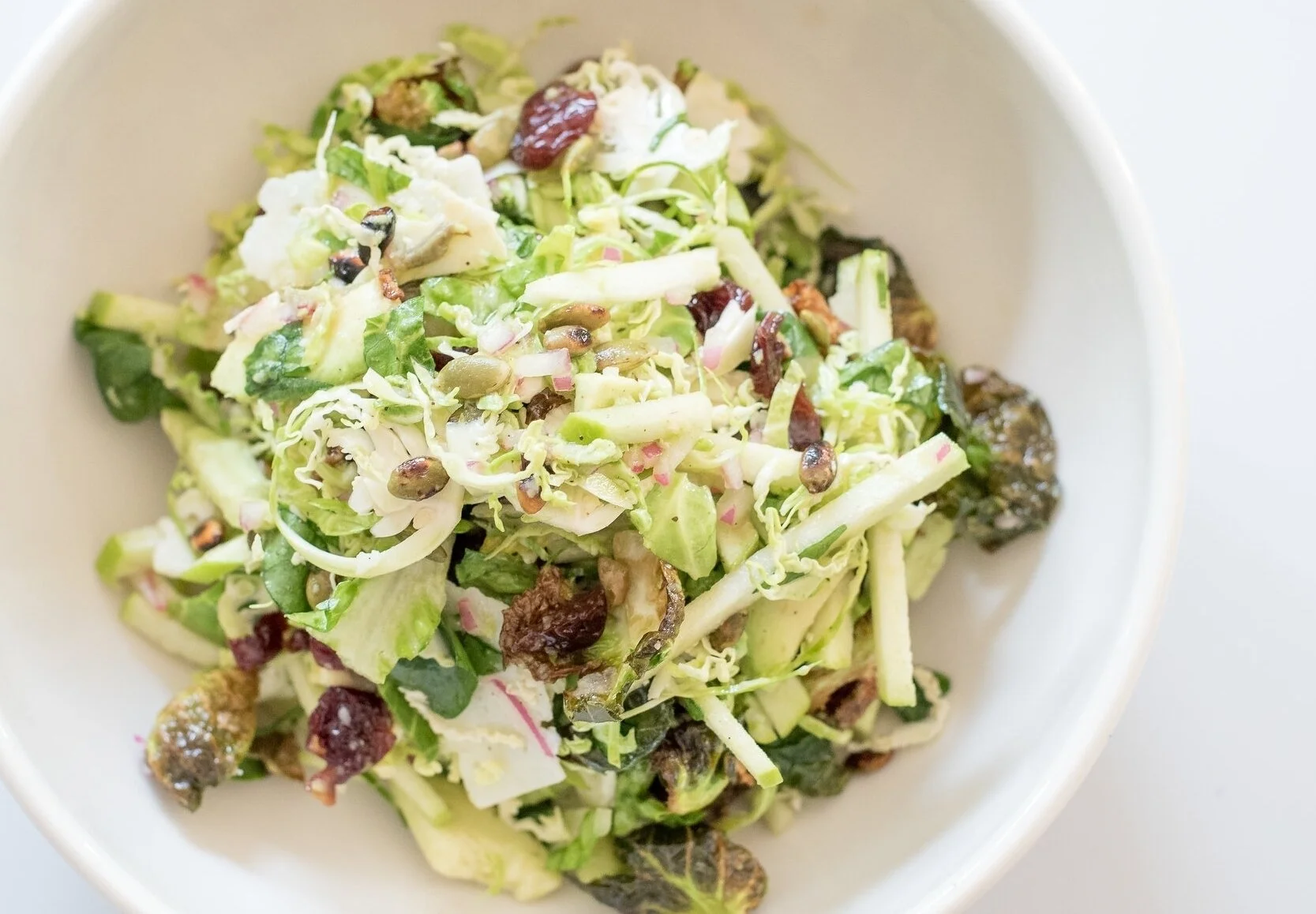 Your favorite Fall salad is back! Say hello to crispy brussels sprout leaves, shaved brussels sprouts, baby gem, dried cherries, spicy pumpkin seeds, avocado, goat cheese, granny smith apples, and honey-lemon vinaigrette. Top it with your protein of choice (shrimp, salmon, chicken, or grouper) and check a healthy lunch off your list!